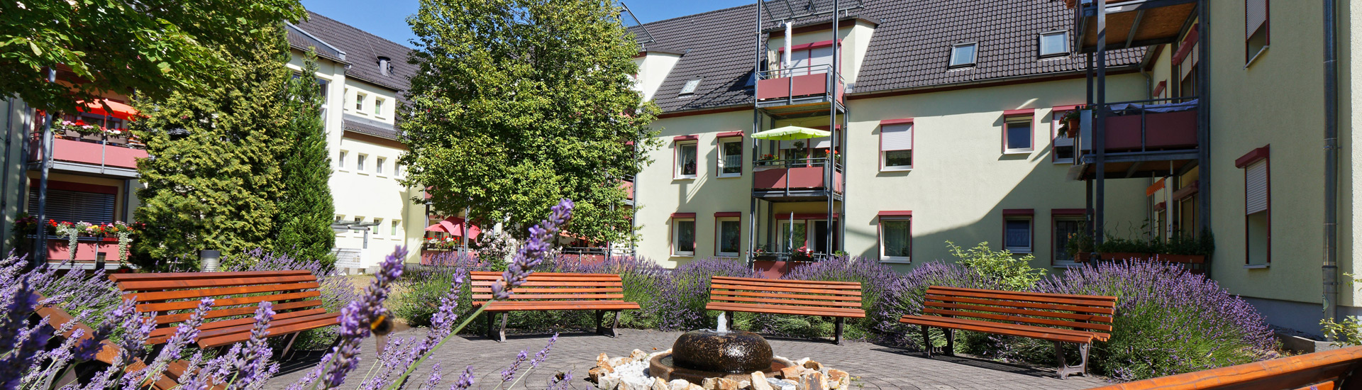 Die Wohnanlage liegt ruhig mitten im Grünen am Ebersdorfer Wald. Das parkähnliche und umzäunte Areal bietet zahlreiche Sitzgelegenheiten. Die benachbarte Kleingartenanlage lädt ebenso zum Spazierengehen ein. Auf dem Gelände befinden sich zudem unser Seniorenpflegeheim Marie-Juchacz-Haus, die Sozialstation Ost und die Tagespflege Villa Marie.
